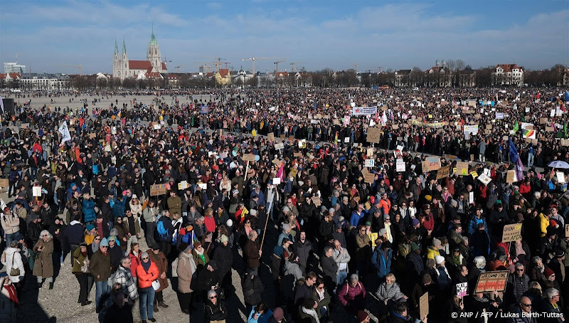 MÜNCHEN (ANP/AFP) – Ongeveer 250.000 mensen hebben in de Zuid-Duitse stad München gedemonstreerd tegen de Alternative für Deutschland (AfD) en tegen samenwerking met die rechts-populistische partij, melden de autoriteiten. De organisatie sprak over 320.000 deelnemers.