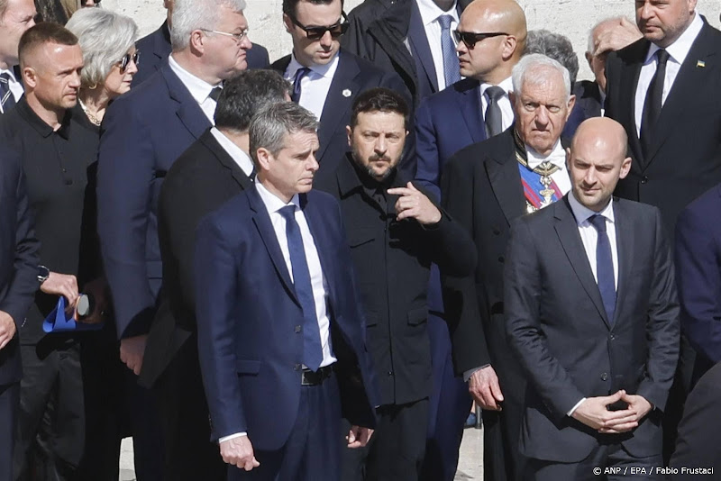 Trump en Zelensky kregen bij de uitvaart van de paus allebei een plek op de eerste rij, met tien andere gasten tussen hen. Er klonk applaus kort nadat Zelensky het Sint-Pietersplein betrad.