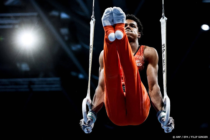 ROTTERDAM (ANP) – Turner Elijah Faverus (18) heeft op de slotdag van de NK in Ahoy Rotterdam drie keer goud gepakt. Faverus, die zaterdag derde werd in het meerkampklassement bij de mannen, kroonde zich in de toestelfinales tot Nederlands kampioen op de toestellen ringen (13,200), rekstok (13,050) en voltige (14,300).