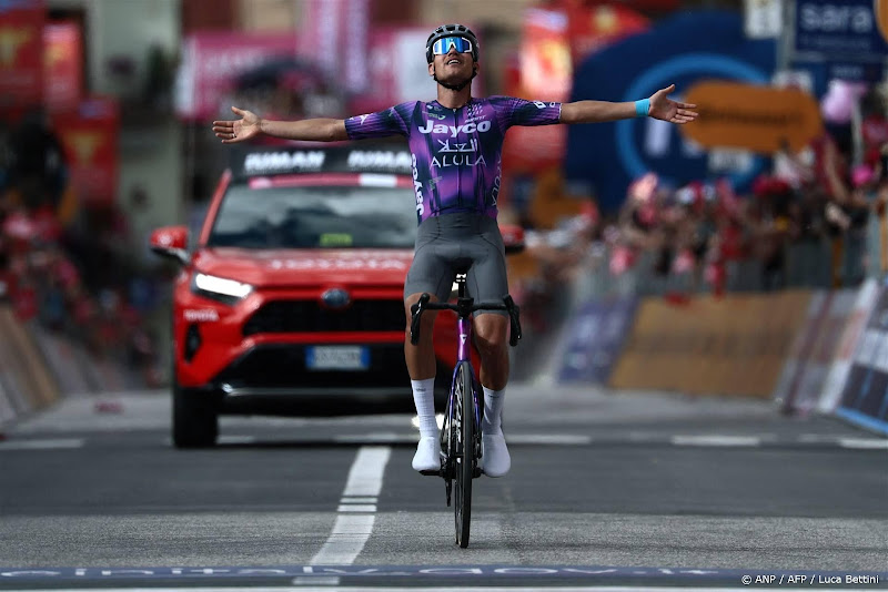 CASTELRAIMONDO (ANP) – De Australiër Luke Plapp heeft de achtste etappe in de Ronde van Italië gewonnen, een etappe over 197 kilometer van Giulianova naar Castelraimondo met veel klimwerk in de Apennijnen. De renner van Jayco-AlUla ontsnapte op zo’n 46 kilometer van de finish uit een kopgroep en soleerde vervolgens over heuvelachtige wegen naar de zege. Wilco Kelderman (Visma – Lease a Bike), die mee was in de lange ontsnapping, arriveerde als tweede aan de meet op 38 seconden achterstand van Plapp.