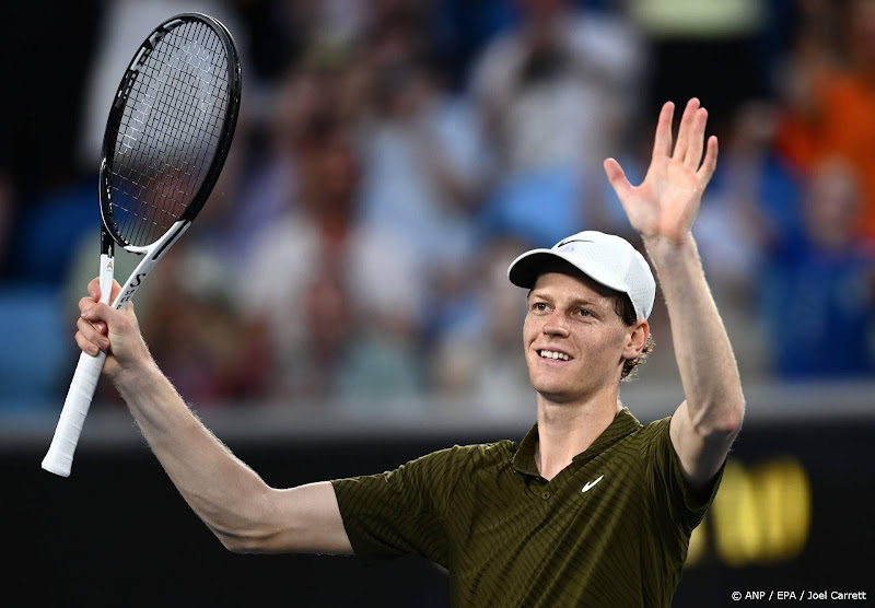 MELBOURNE (ANP) – Tennisser Jannik Sinner is op de Australian Open doorgedrongen tot de kwartfinales. De Italiaan, die de vorige twee edities won, versloeg zonder setverlies zijn als 22e geplaatste landgenoot Luciano Darderi: 6-1 6-3 7-6 (2). Sinner speelt in de volgende ronde tegen de Amerikaan Ben Shelton, die de Noor Casper Ruud in vier sets aan de kant zette: 3-6 6-4 6-3 6-4.